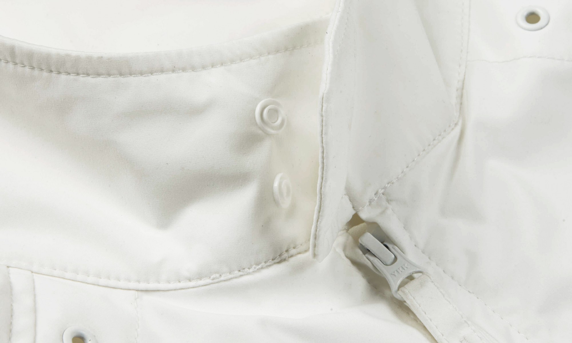 Storm cuffs and pockets, extended back neck flap and drawstring cord at the waist.