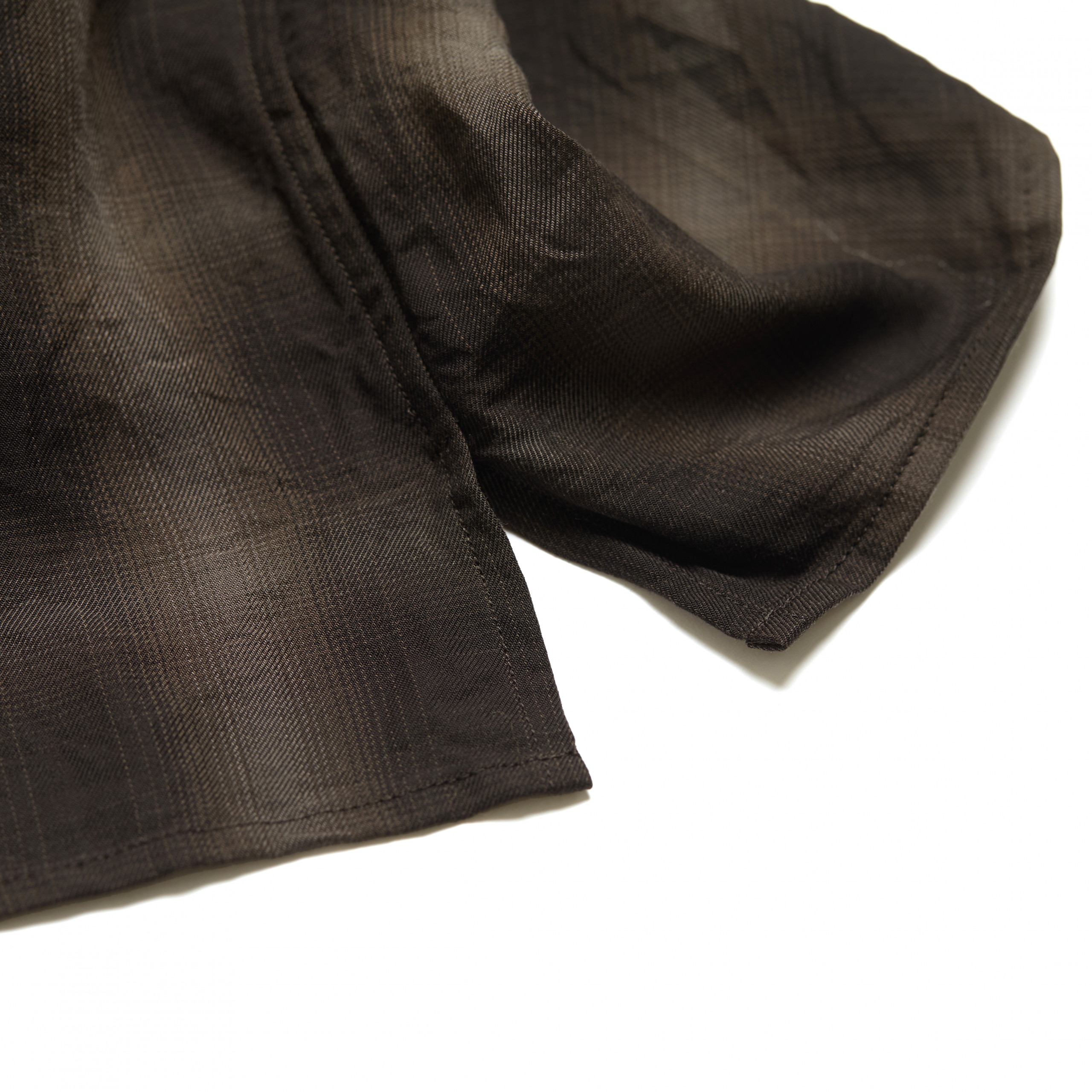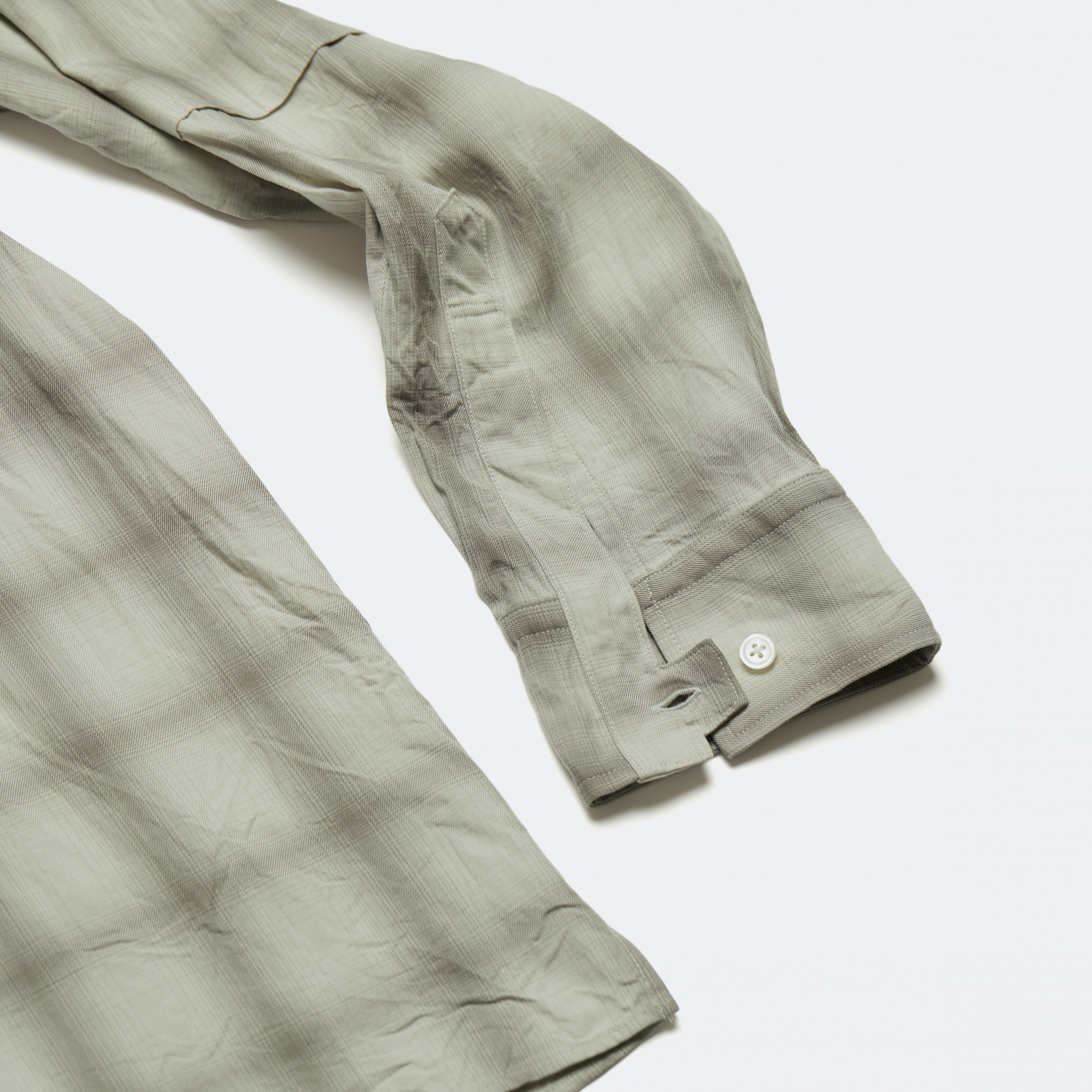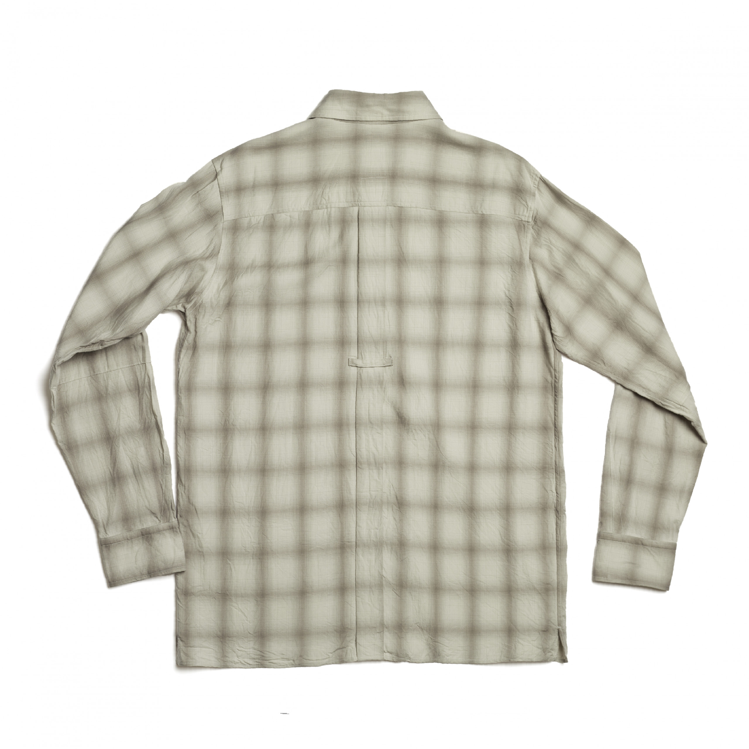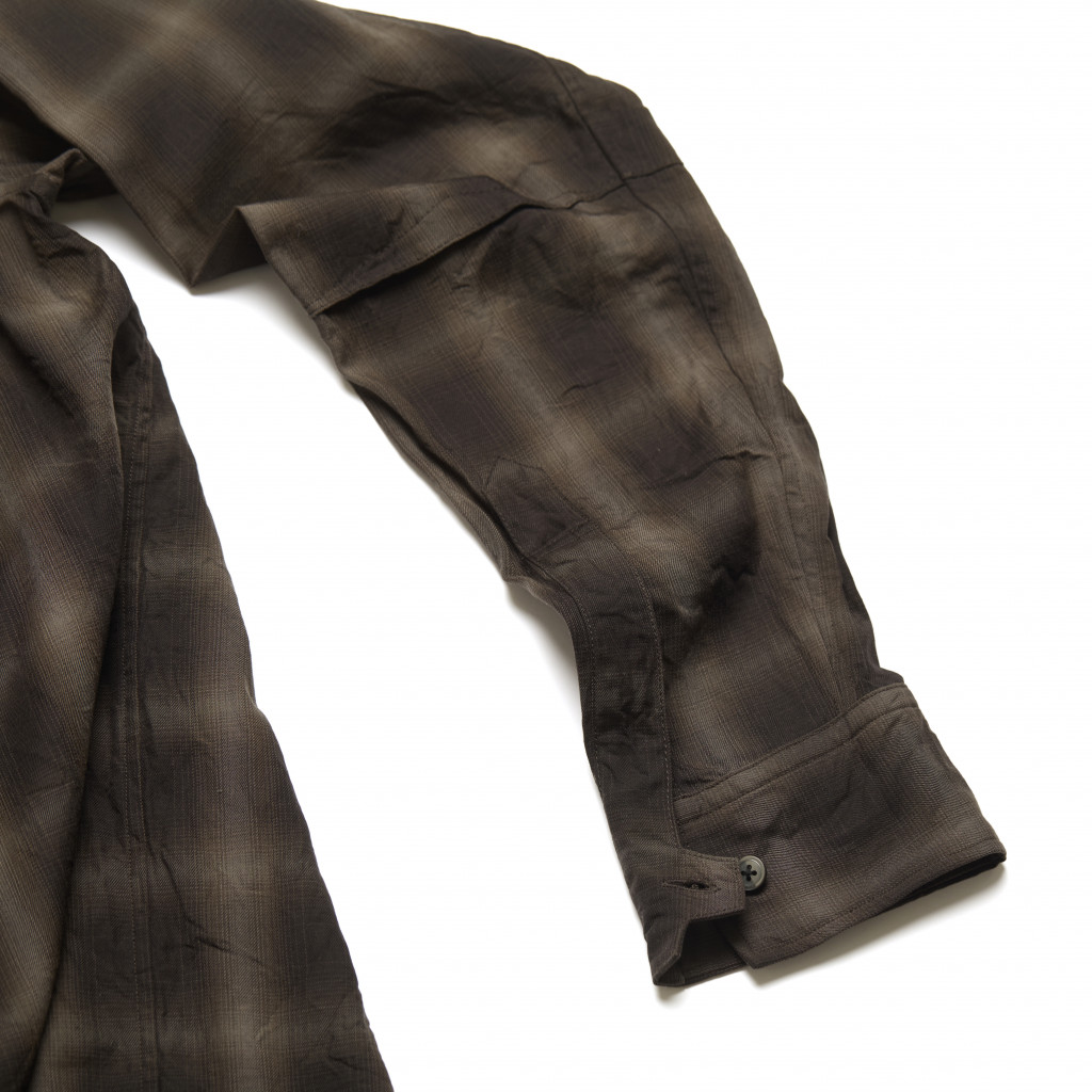 Single needle stitch construction and cut by hand with specialised tailored shirt maker. Signature cuff shape with selvedge placket details, back box pleat and reinforced elbow panel.