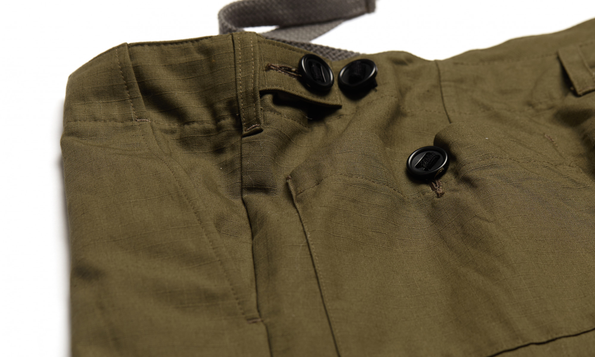 Collars are constructed with a floating canvas interlining and come with removable stiffeners. Mother pearl buttons and pre-washed